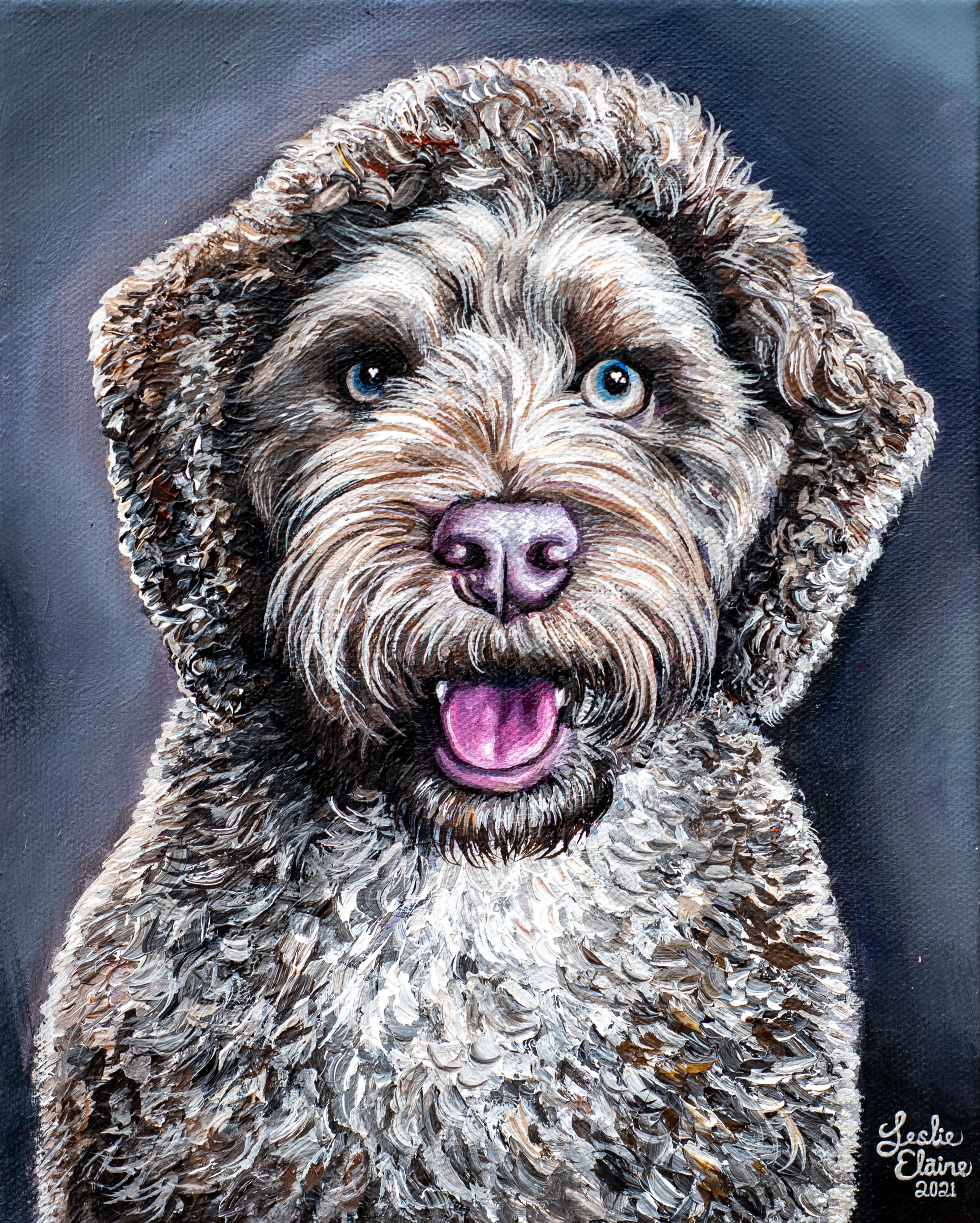 I love the little tongue and the eyes on this dog. Such a beautiful creature.