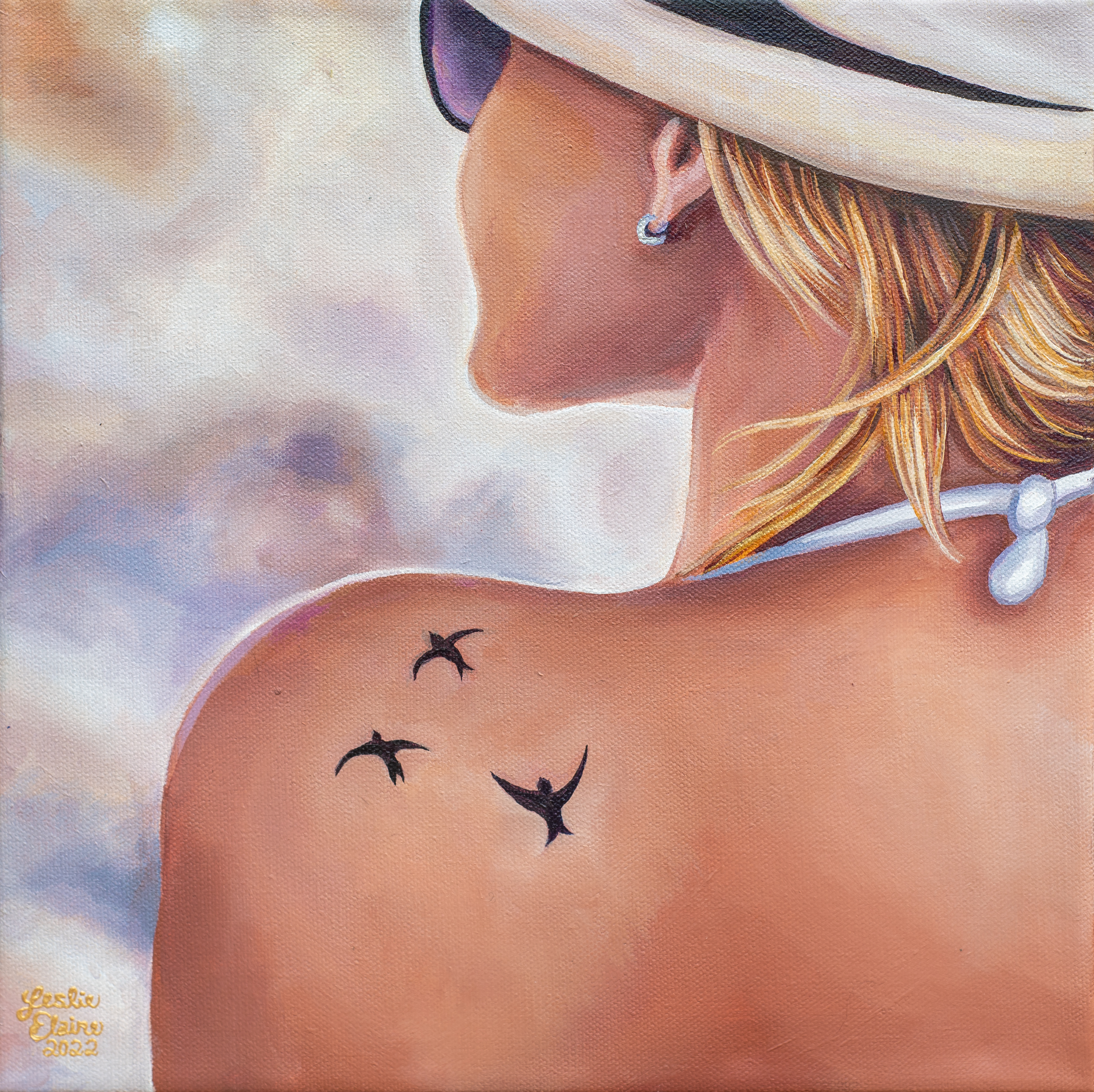 Art: bird featured girl/woman hair