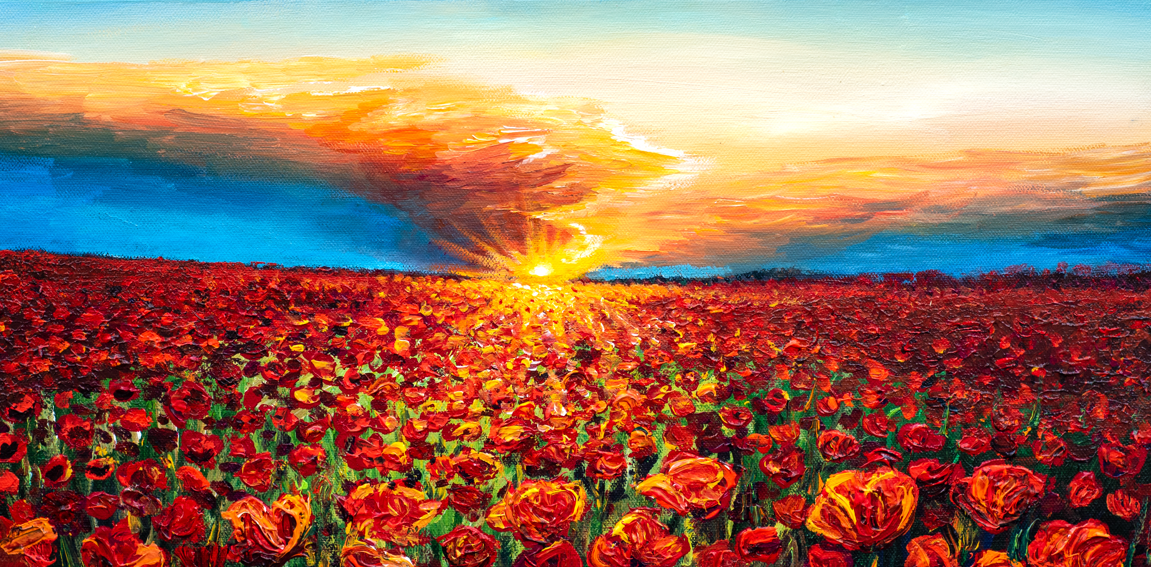 Thoughts: So vibrant!In the dreary, gray winter, I was craving some color.....so I painted this fiery field of poppies.