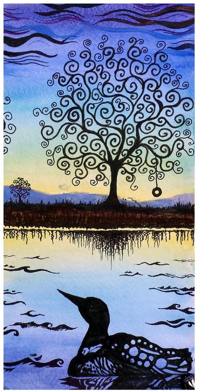Thoughts: The card option is of the top portion of the art piece: it is the swirly tree with tire swing, and the loon is not shown at all.